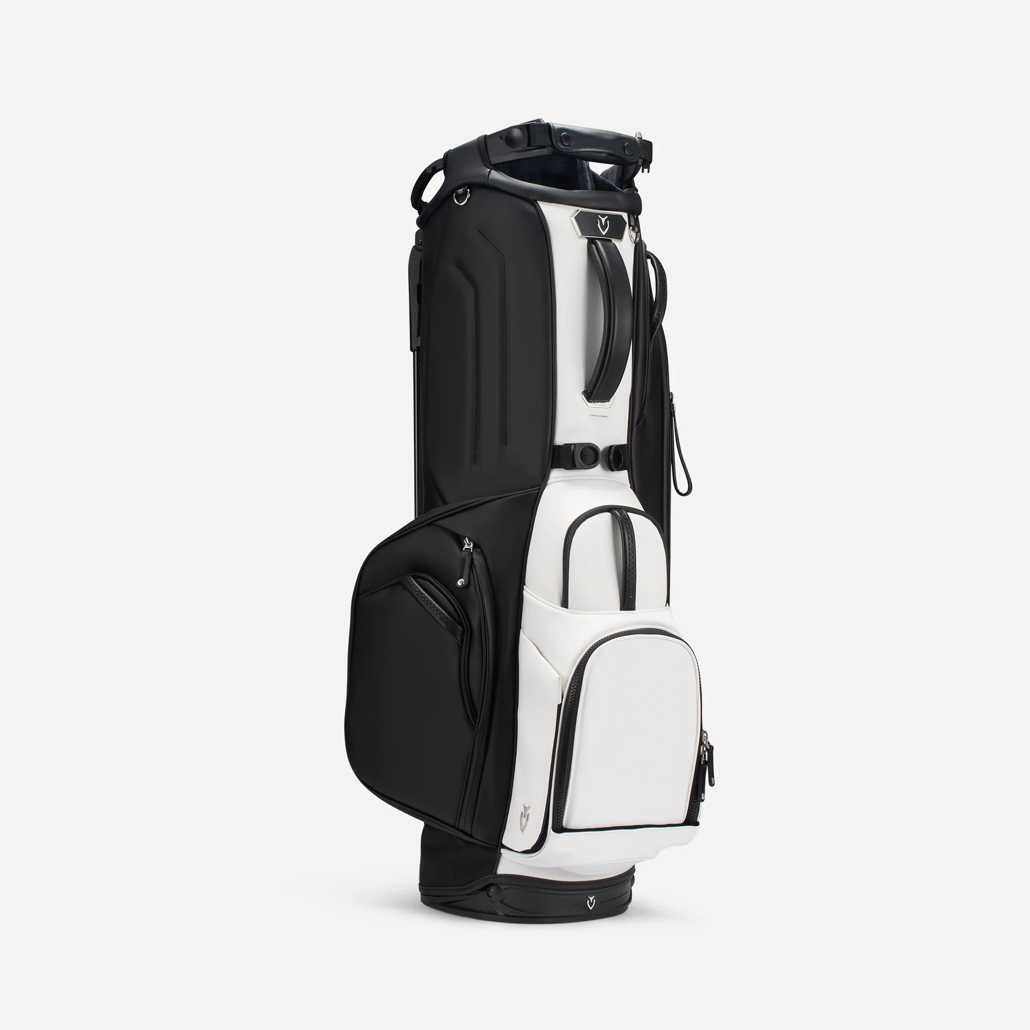 Experience the pinnacle of luxury performance with the Player V Pro. Meticulously crafted for the highest level of functionality and on-course convenience. The newly designed 7-and-14 way tops offer best in class club organization with dedicated putter storage and offset club dividers for optimal club viewing and retrieval. The Player V Pro utilizes VESSEL’s patented technologies (Equilibrium Double Strap and Rotator Base) for maximum balance and superior stability. Intentionally placed high strap-attachment points promote further balance and eliminate club fallout while the bag is being carried. A key feature is the cart strap pass-through for added protection when used on a cart or trolley. With too many fine details to name, you’ll be pleasantly surprised to discover that every detail, every element, of the Player V Pro is thoughtfully crafted for an uncompromised game.